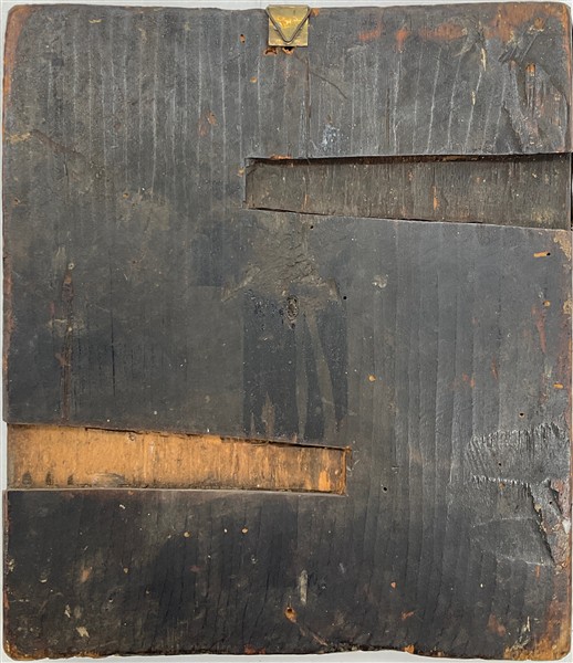Arte russa, secolo XIX. Icona quadripartita a tempera su tavola con Crocefissio