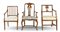 Lotto di tre diverse poltrone in legno intagliato con schienali a giorno. Secol
