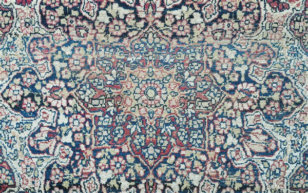 Tappeto Kirman, Persia, fine secolo XIX. Decoro con medaglione nei toni del blu