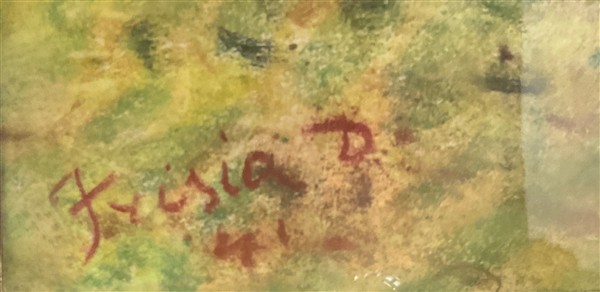 Donato Frisia "Scorcio fluviale con alberi" 1941 pastelli colorati su cartoncino