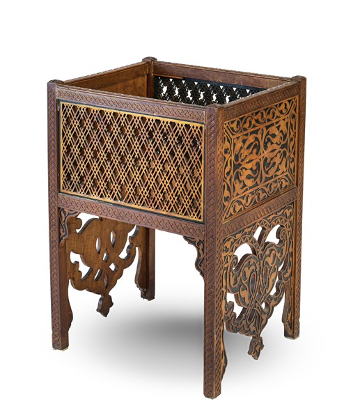 Lotto composto da un mobiletto contenitore in legno intagliato a bassorilievo s