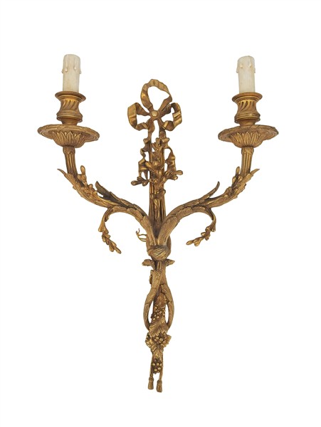 Lotto 474 | Lotto composto da coppia di applique in bronzo dorato a due bracci fogliati e a