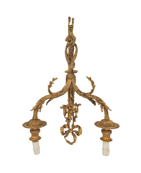 Lotto composto da coppia di applique in bronzo dorato a due bracci fogliati e a