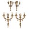 Lotto composto da coppia di applique in bronzo dorato a due bracci fogliati e attaccatura a nastro (h cm 58) e coppia di applique di gusto Impero a due luci con bracci a testa di rapace e attaccatura a faretra (h cm 37). (lievi difetti)