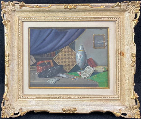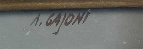 Adriano Gajoni "Interno" olio su masonite (cm 28x36) firmato in alto a destra a