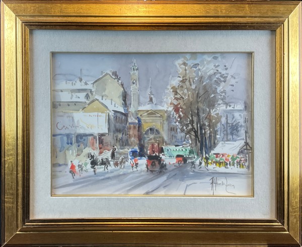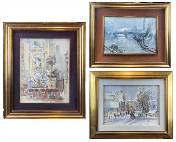 Lotto composto da tre acquerelli di diversi soggetti, autori e misure (cm max 38x55)