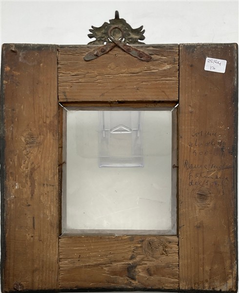 Piccola cornice in legno ebanizzato con bordure guilloché e fascia decorata da