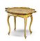 Lotto composto da tavolino (cm 59x54x45) e vassoio sagomato in legno dipinto e laccato a motivi floreali e rocaille, profili dorati (cm 75x52) (difetti)