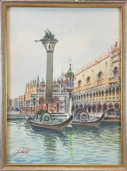 Lotto composto da una "Veduta veneziana" ad acquarello su carta, due dipinti ad