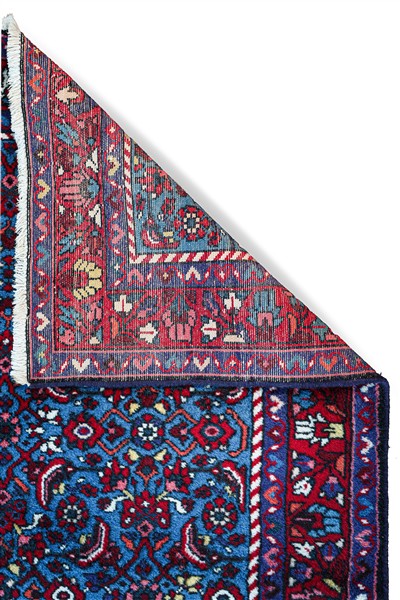 Tappeto Hamadan, Persia, secolo XX. Decoro Herati policromo su fondo blu carico