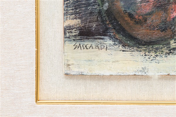 Carlo Saccardi Lotto coposto da due oli, uno su cartone e uno su carta, di sogge