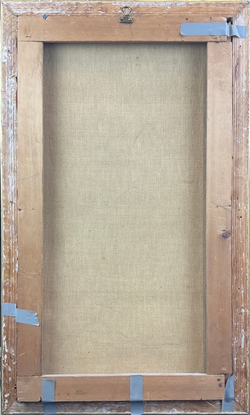 Ignoto secolo XX "Scorcio notturno con figure intente alla serenata" olio su