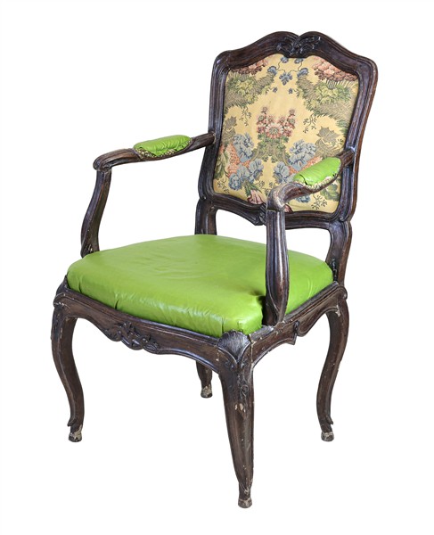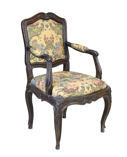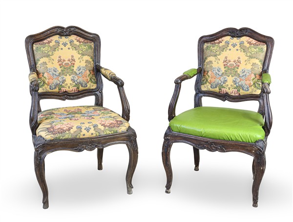 Lotto 572 | Coppia di poltrone in legno intagliato con braccioli terminanti a ricciolo, gam