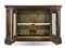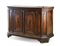 Credenza scantonata in noce a due sportelli pannellati e lesene con rilievi mis
