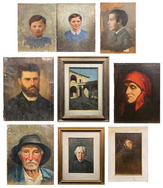 Lotto 635 | Lotto composto da nove dipinti ad olio su diversi supporti, di vari autori, sog