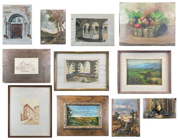Lotto composto da numerosi dipinti ad olio di diversi soggetti, tecniche e misure