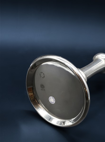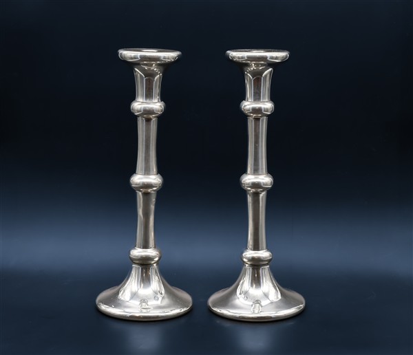 Lotto composto da coppia di candelieri in peltro argentato (h cm 42), una zuppi