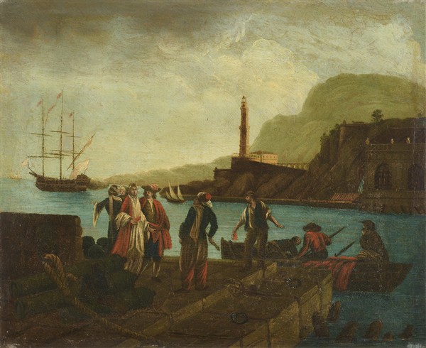 Ignoto "Veduta di un porto" olio su tela (cm 38x46,5) in cornice