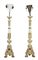 Coppia di grandi portaceri tripodi in legno intagliato, laccato e dorato con de