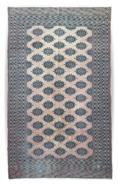 Lotto 706 | Tappeto Boukhara, Pakistan, secolo XX. Decoro con file di Boteh su campo rosa (