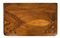 Coppia di tavoli da parete in legni di varie essenze con piano intarsiato e fil