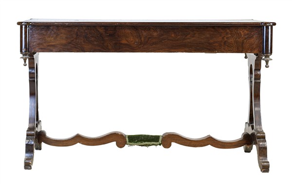 Scrivania da centro impiallacciata in palissandro con tre cassetti nella fascia