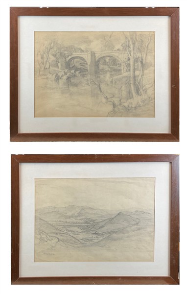 Lotto composto da due "Paesaggi" a carbonicno su carta (cm 26x36)
