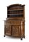 Credenza con piattaia in noce, parte inferiore a due sportelli pannellati e tre