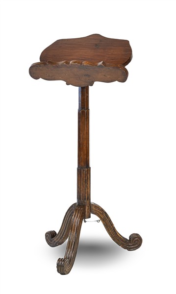 Leggìo da terra in noce con con piano sagomato, sostegno sfaccettato su tripode scanalato. Secolo XIX (cm 59x131x40) (difetti)