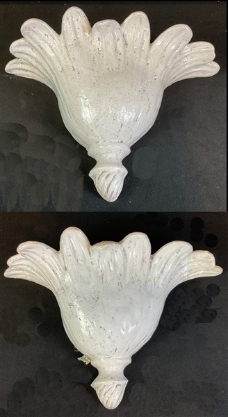 Coppia di applique in ceramica bianca a motivo fogliato (cm 53x42x20) (difetti e restauro)