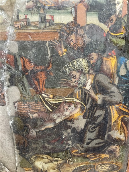 Lotto 821 | Due cartoni contenenti vari antichi oggetti tra cui fregi, un vetro eglomizzato