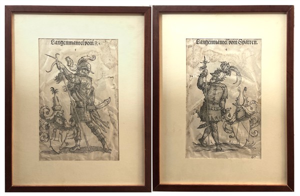 CHRISTOPH WEIDITZ Due xilografie raffiguranti "Armigeri" (al visibile mm 260x165
