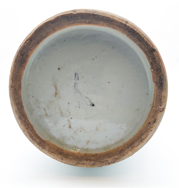Vaso in porcellana dipinta in policromia a motivi floreali e iscrizioni.