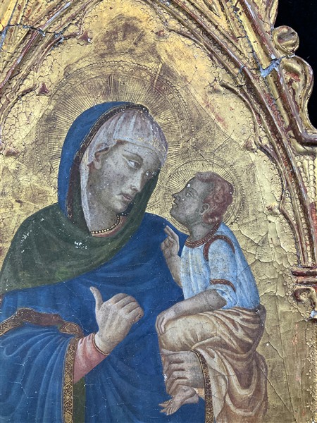 Da Pietro Lorenzetti "Madonna col Bambino" tempera su tavola (cm 52x20) (difet