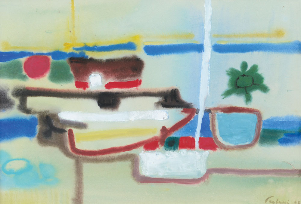 Lotto 115 | PAULUCCI ENRICO Genova 03/10/1901 - Torino 22/08/1999In porto, 1965gouache su...