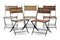 Gruppo di cinque sedie pieghevoli in ferro battuto con sedute e schienali confe