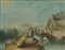 Giuseppe Zola (attr.) "Veduta con ponte e viandanti" olio su tela (cm 86x116) i
