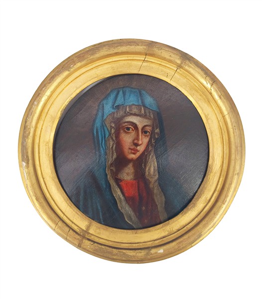 Scuola del secolo XVIII "Gesù Fanciullo" e "Vergine" coppia di dipinti ad olio