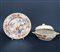 Lotto composto da una equelle biansata con coperchio in porcellana decorata a f