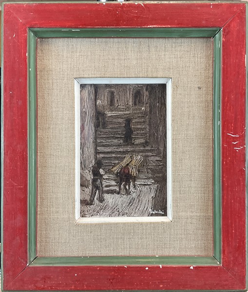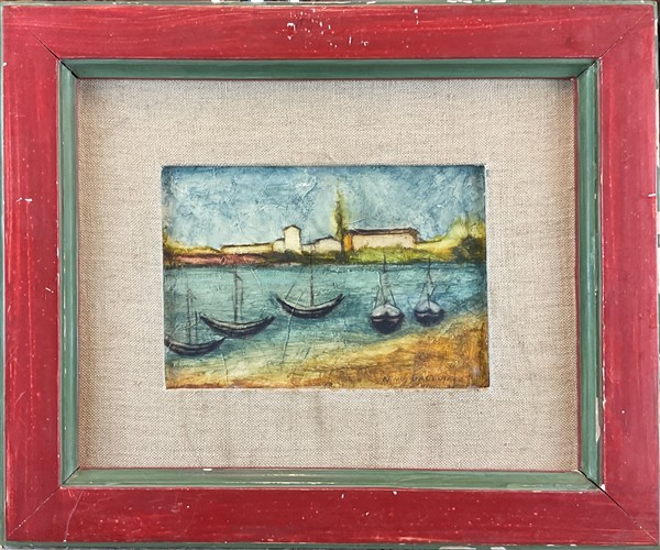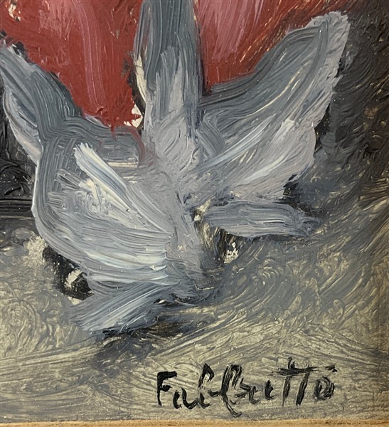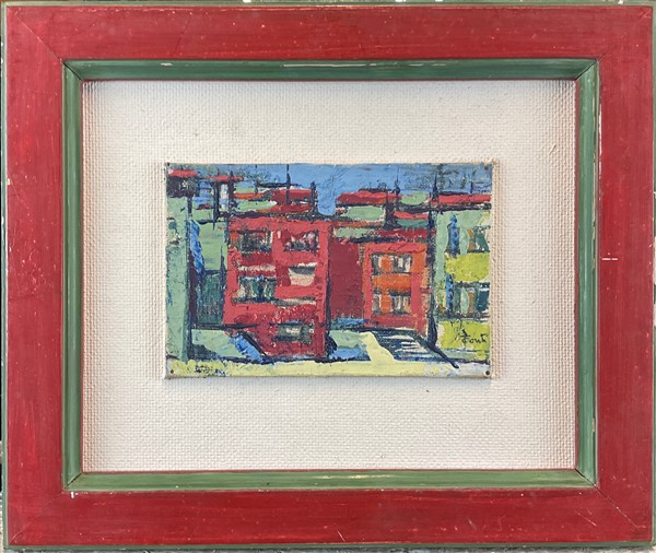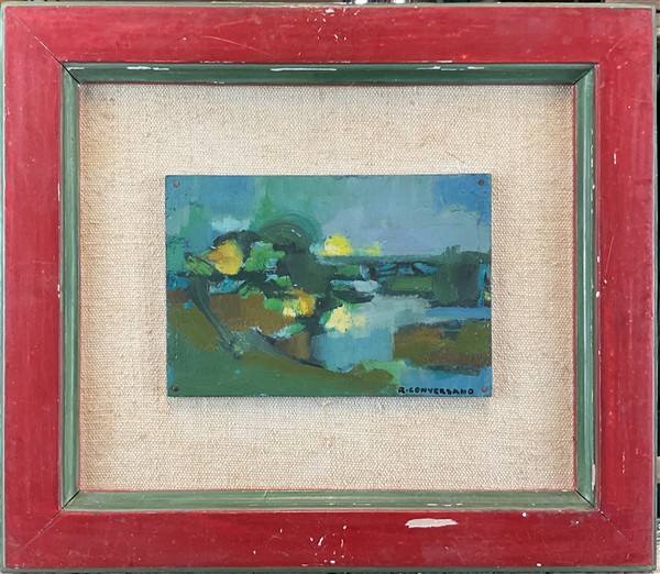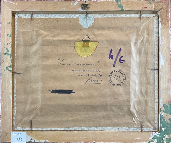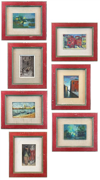 Lotto composto da sette piccoli oli su supporti differenti, di autori e soggetti diversi (cm 10x15) tutti firmati in basso, tutti con timbro al retro "Mostra nazionale Ferrara del 10x15"