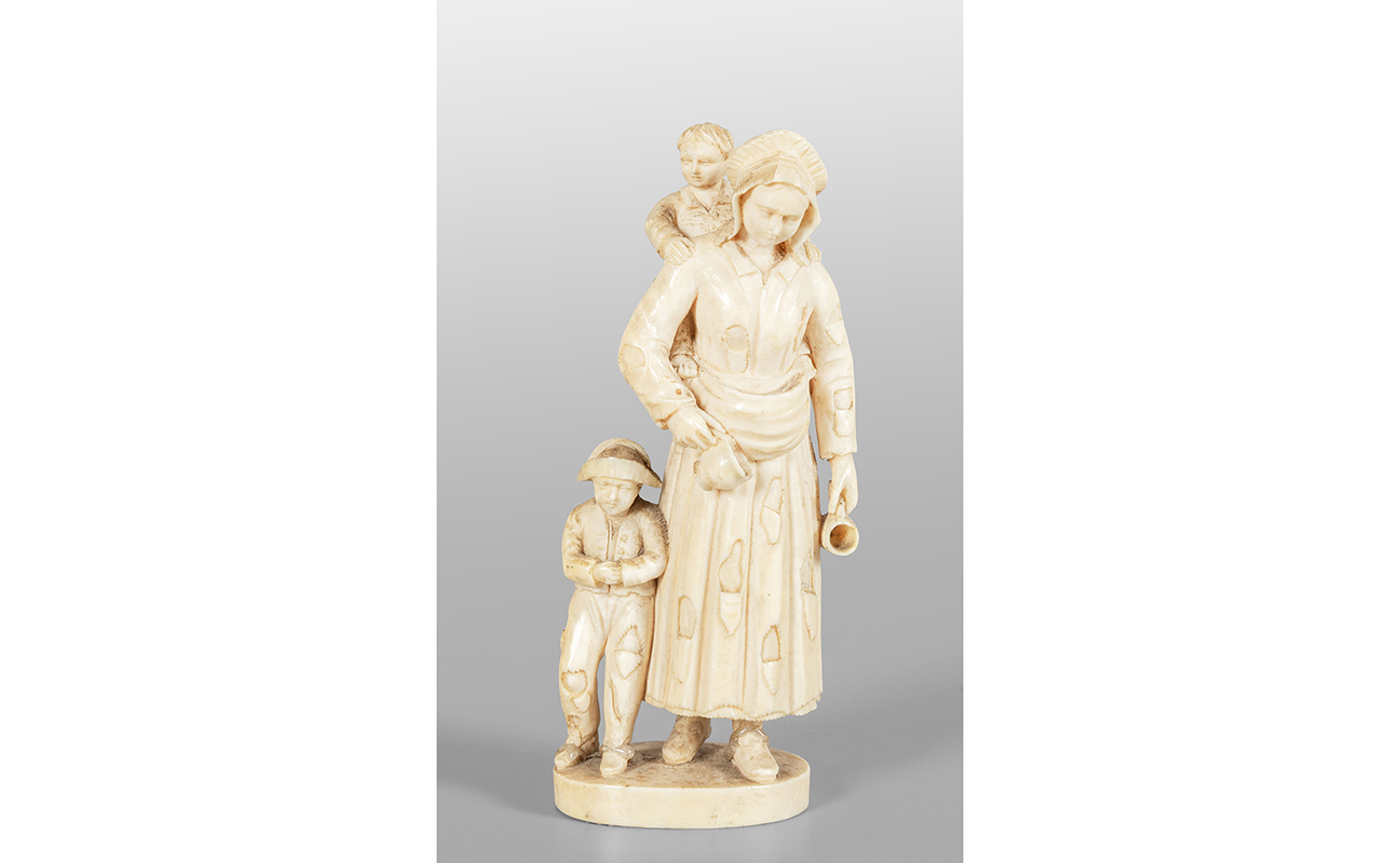 Contadina con bambini scultura in avorio intagliato Nord Europa sec.XVIII