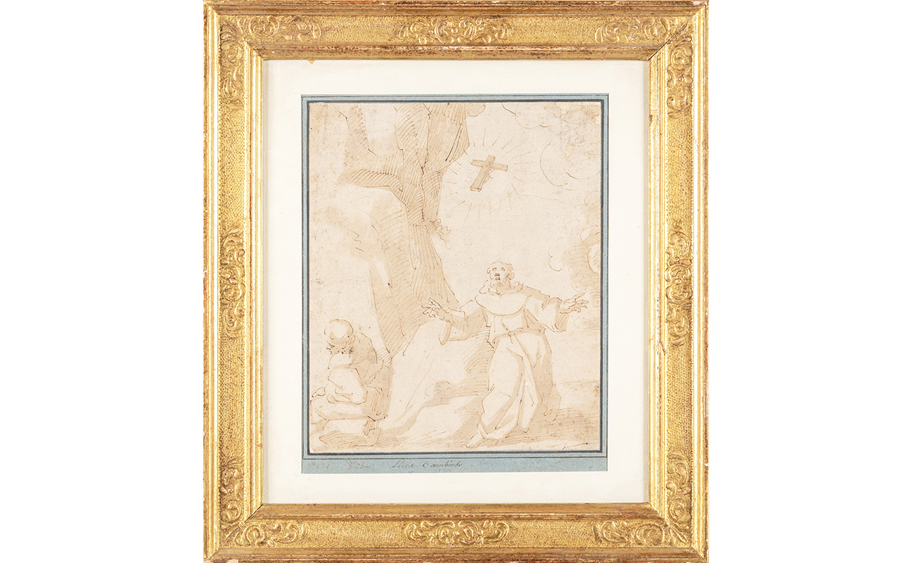 Scuola genovese sec.XVI (Luca Cambiaso) 'Santo in adorazione della Croce' disegno