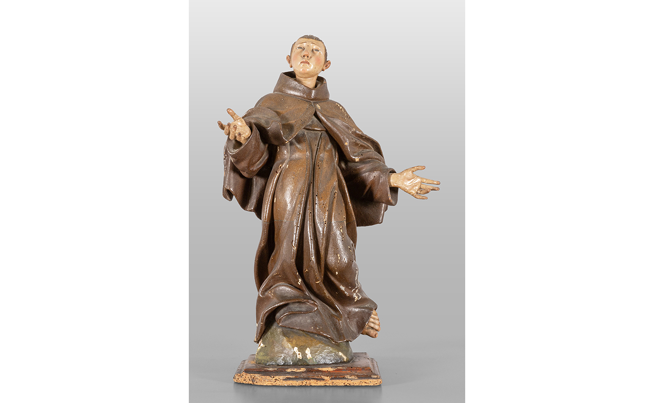 Sant'Antonio scultura in legno intagliato e laccato Genova sec.XVIII