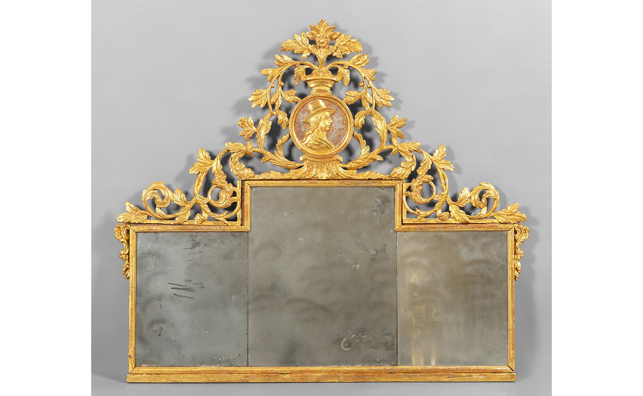 Caminiera Luigi XVI in legno intagliato e dorato Piemonte fine sec.XVIII