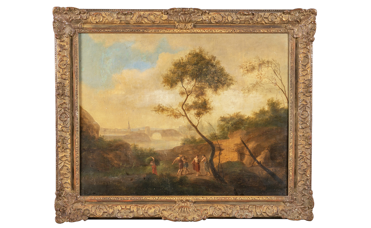 Scuola romana fine sec.XVIII 'Paesaggio con figure' olio