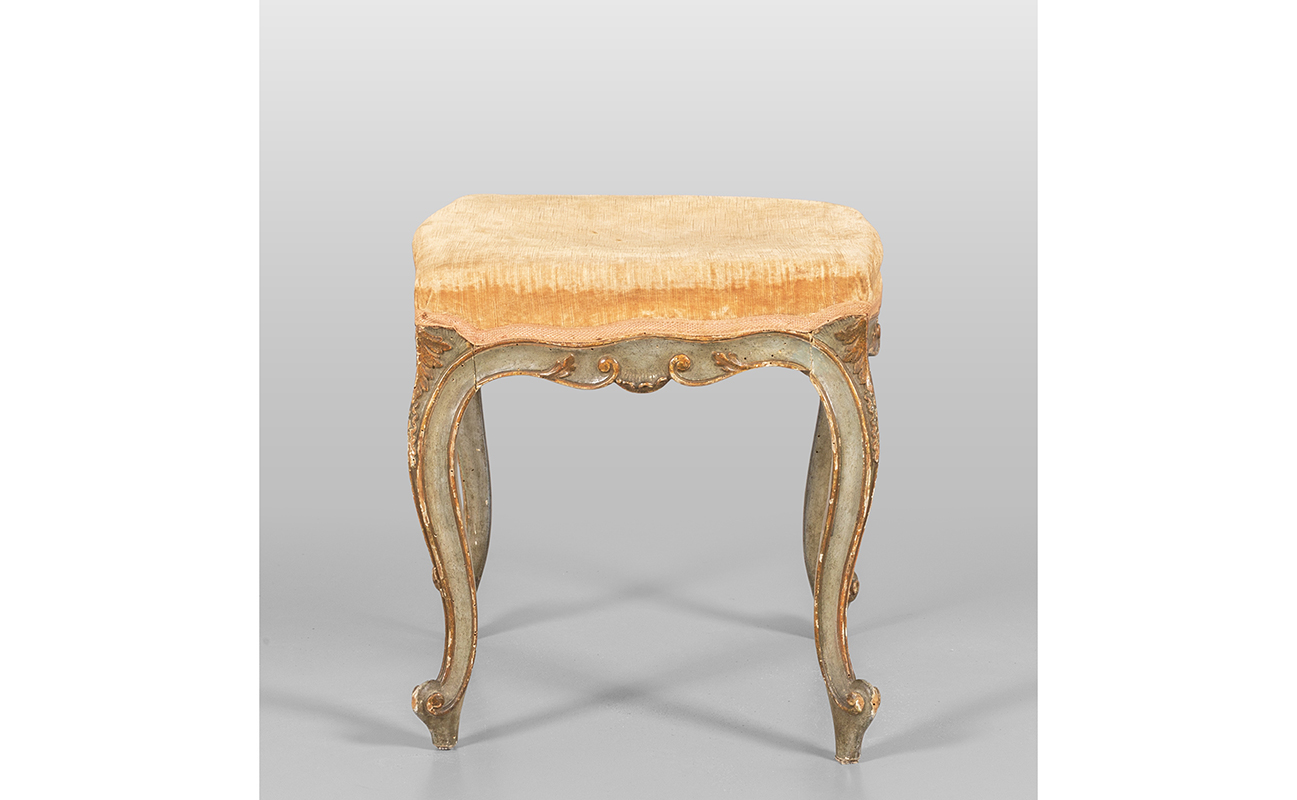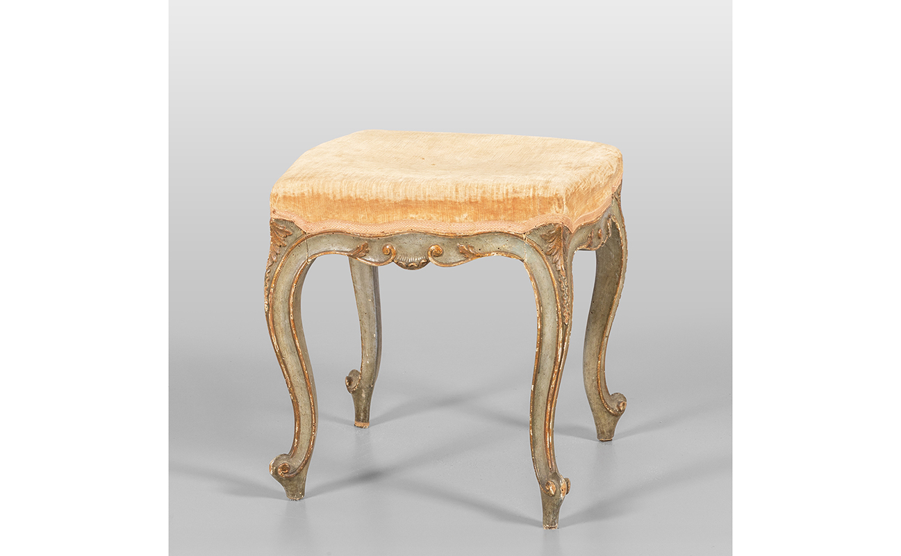 Sgabello Luigi XV in legno intagliato e laccato Piemonte sec.XVIII