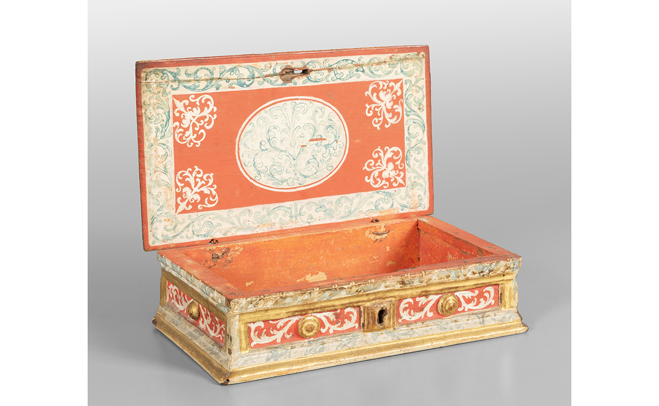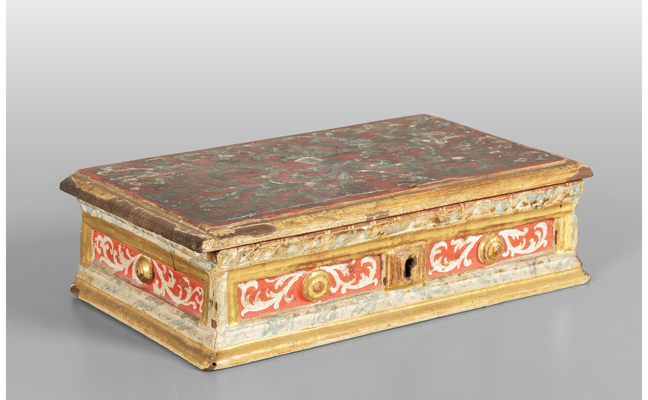 Scatola in legno intagliato laccato e dorato Venezia sec.XVII