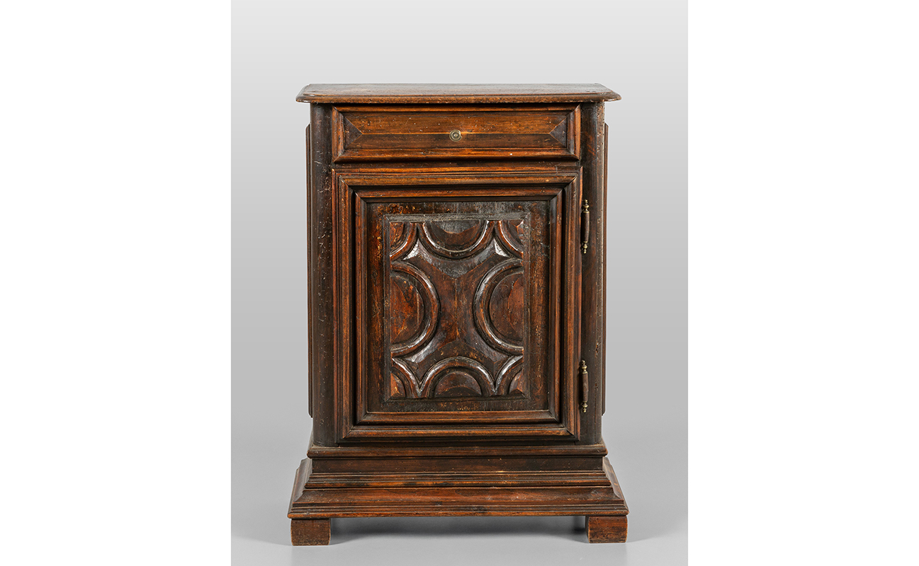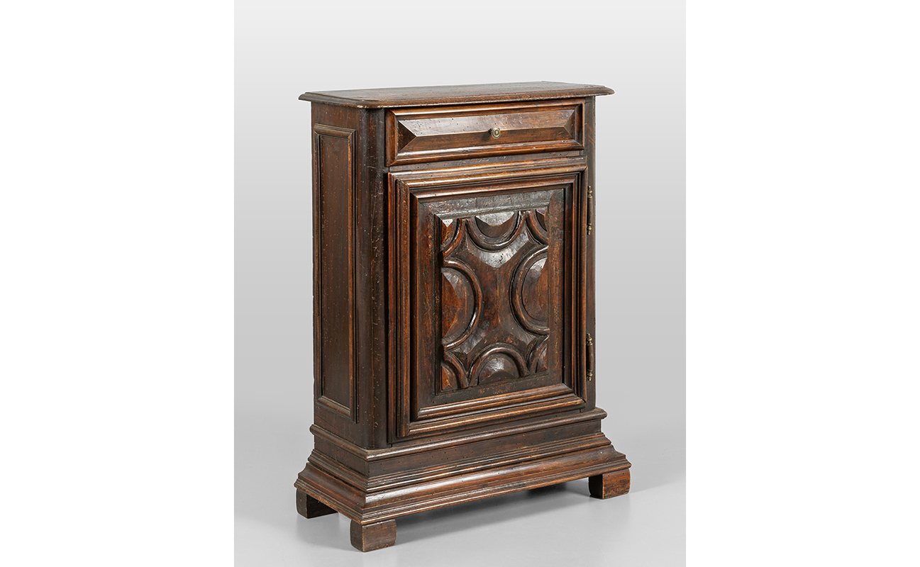 Credenzino Luigi XIV in noce uno sportello più cassetto nella fascia Piemonte sec.XVIII