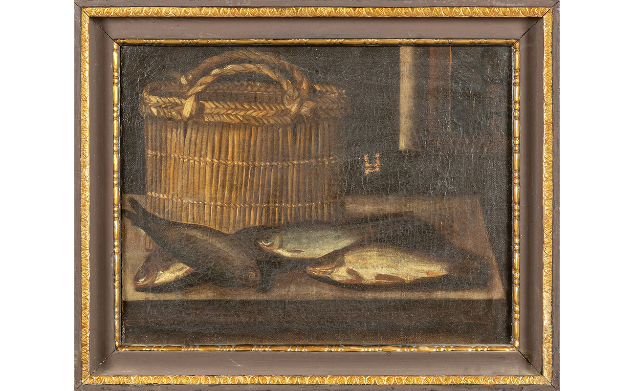 Scuola napoletana sec.XVII 'Natura morta con pesci' olio