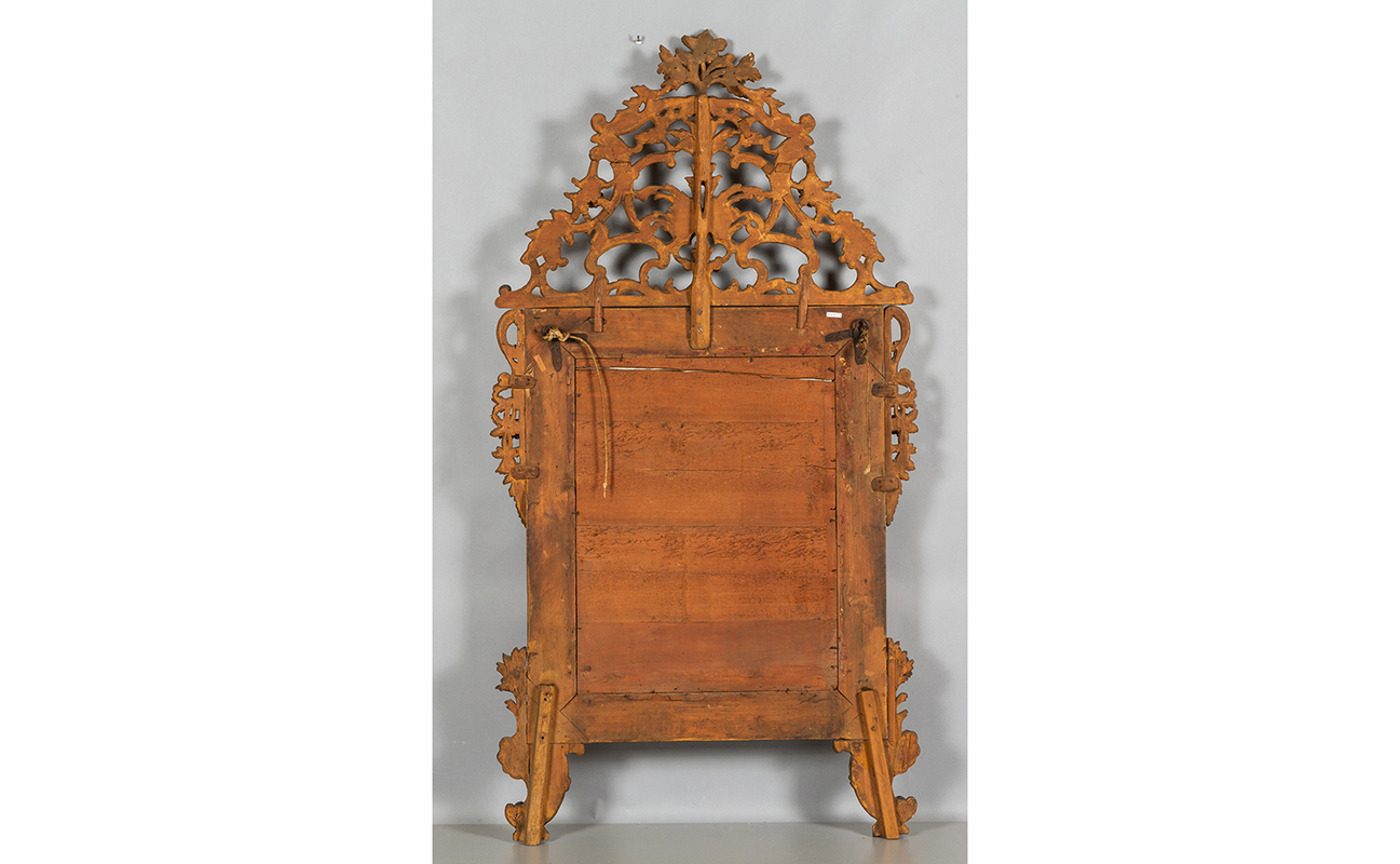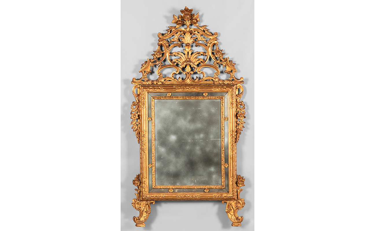 Specchiera Luigi XIV con controspecchi in legno finemente intagliato e dorato Piemonte sec.XVIII